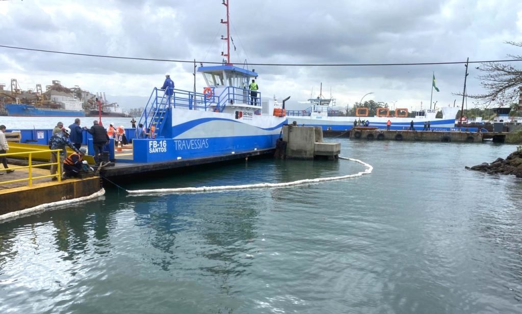 Simulado na travessia Santos-Guarujá testa resposta a vazamento de óleo no mar