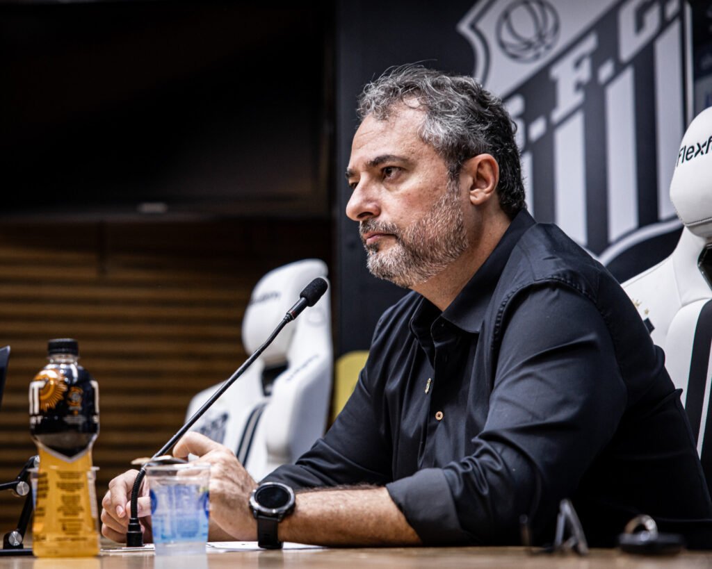 Alexandre Mattos, Executivo de Futebol do Santos FC, concede entrevista coletiva