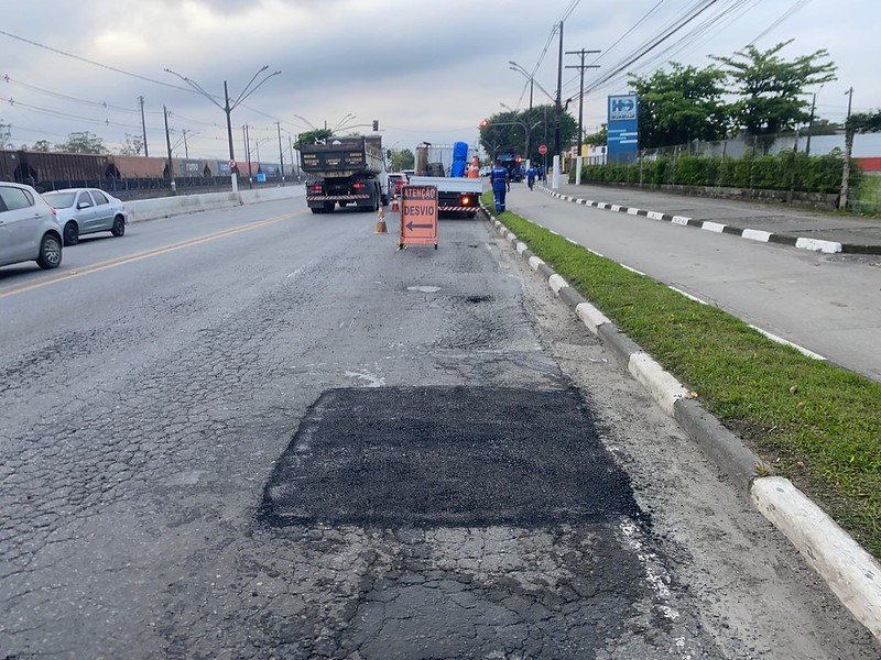 Zeladoria e tapa-buraco prosseguem em diversos locais de Guarujá