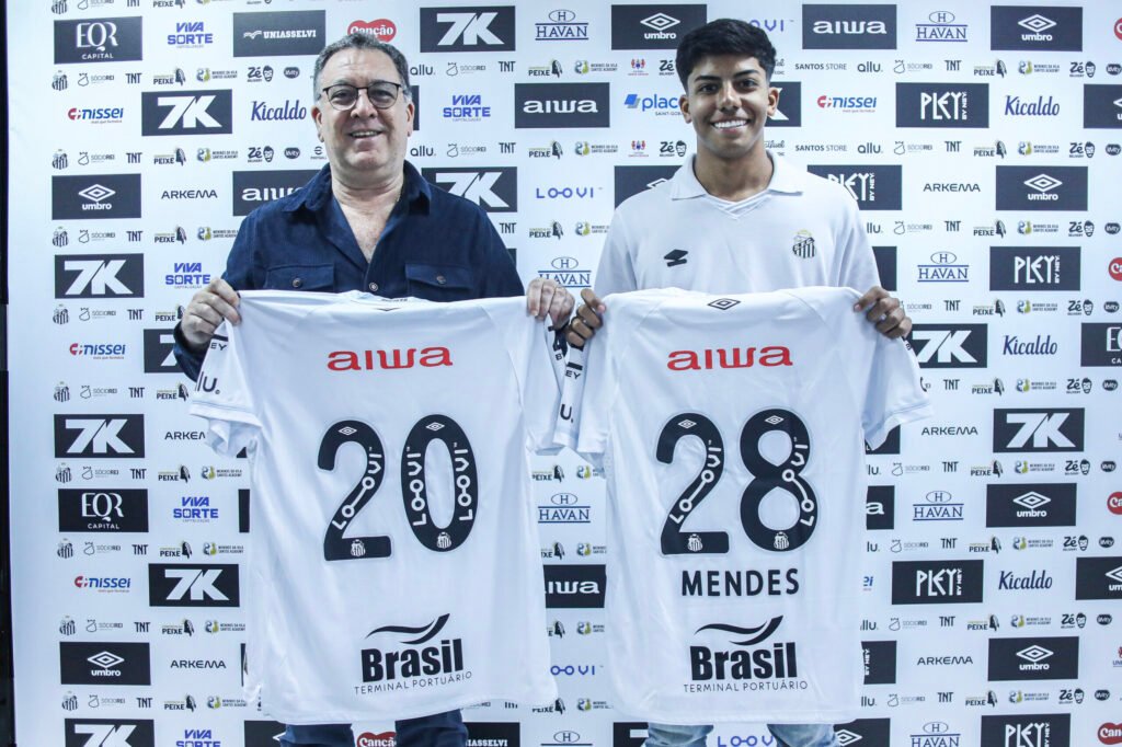 O volante Mateus Mendes, de 16 anos, assinou o primeiro contrato profissional com o Santos FC. O novo compromisso do atleta é válido até 31 de março de 2028. O antigo vínculo, de formação, era válido até fevereiro de 2026. Natural de São Paulo, Mendes chegou para o time santista em julho…