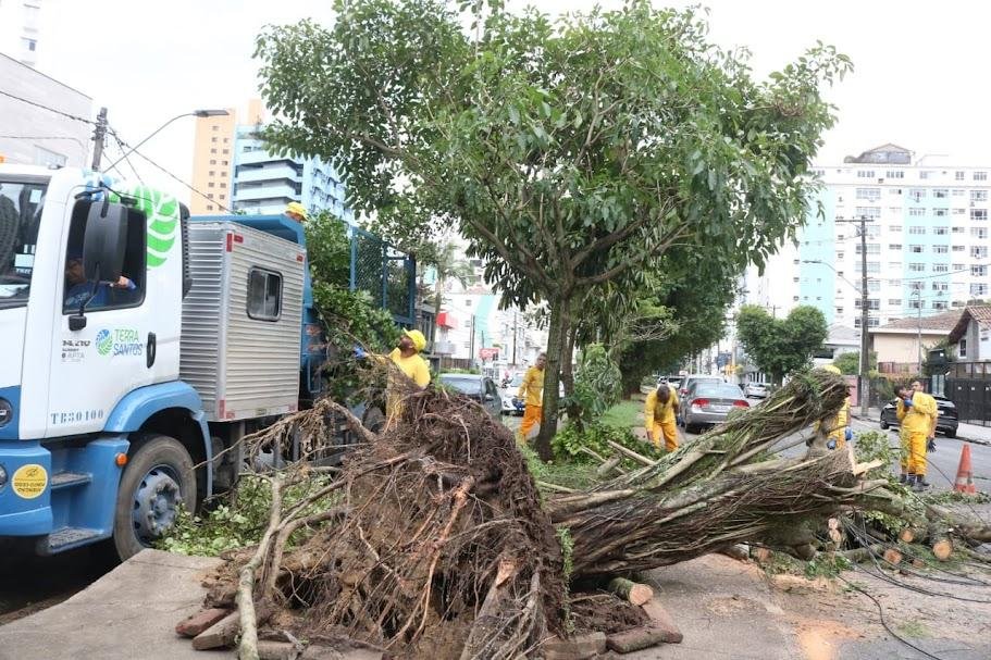 A ventania que atingiu Santos no fim de semana, com rajadas próximas de 140 km/h, provocou estragos em diversos pontos da Cidade. Ao menos sete árvores caíram, interditando ruas e afetando a rede elétrica. A Defesa Civil informou que não houve registro de feridos, mas pede que a população evite áreas isoladas e fique atenta a fios caídos e estruturas instáveis.