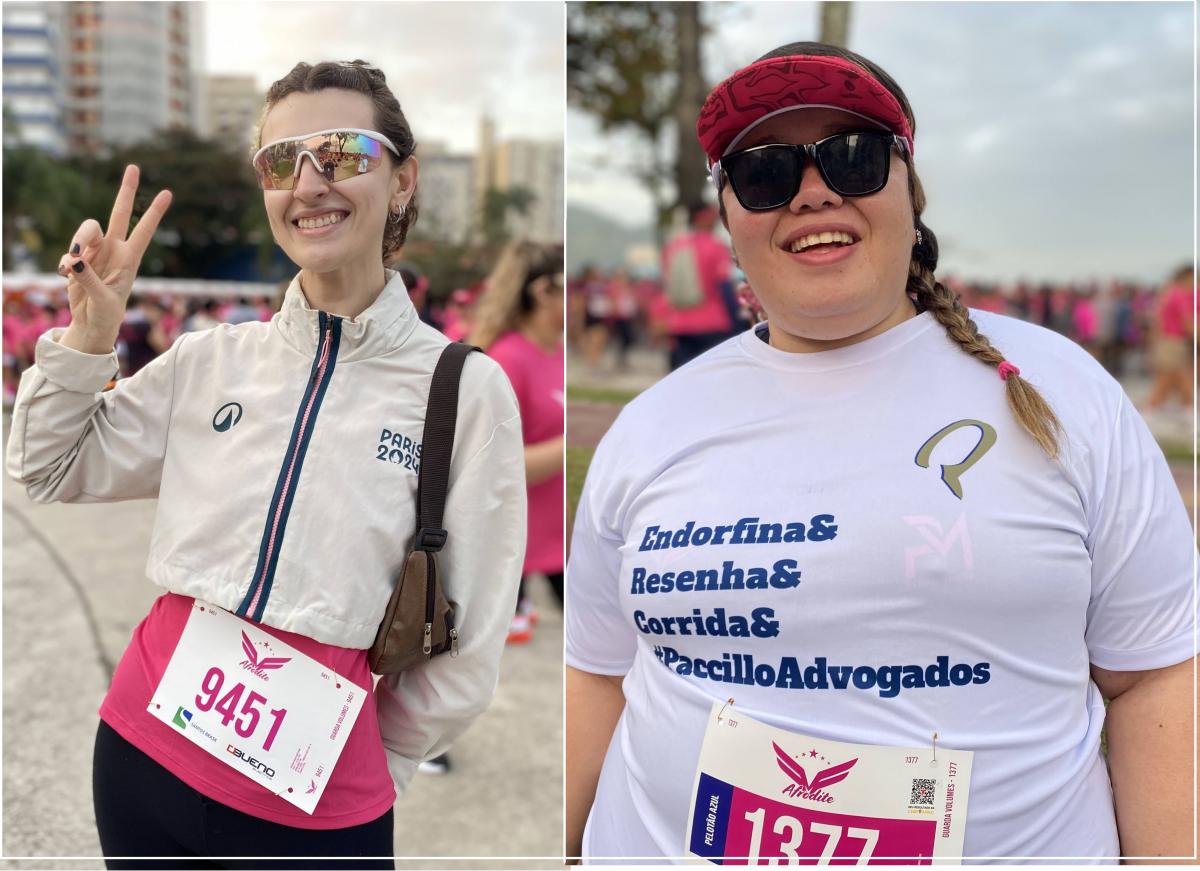 A filha completou: “Minha mãe é minha maior incentivadora. Estamos sempre participando, treinando e correndo pela orla de Santos. Mas confesso que ela é quem me estimula e ganha de mim. A meta é ela me puxar hoje, vou correr atrás dela”, brincou Marcela que trabalha com comércio exterior.