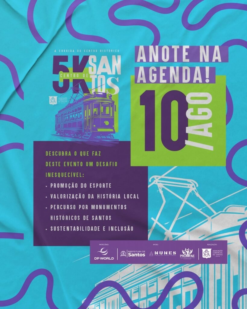 A Corrida Histórica do Centro de Santos vai movimentar as ruas da região no domingo do Dia dos Pais (10), provocando alterações no trânsito. A largada será às 7h, da Praça Mauá, que estará bloqueada a partir das 3h, assim como o trecho da Rua General Câmara entre as ruas Itororó e Frei Gaspar. A liberação dessa área está prevista para as 12h e, durante a interdição, os motoristas poderão utilizar a Rua João Pessoa para rota alternativa.