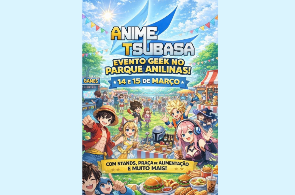 O Parque Anilinas recebe, neste fim de semana, mais uma edição do Anime Tsubasa, evento dedicado à cultura geek e oriental que acontece nos dias 14 e 15 de março (sábado e domingo), das 12h às 20h. Com apoio da Secretaria de Turismo, a iniciativa reúne fãs de animes, mangás, games, K-pop e cosplay, transformando o espaço público em um ponto de encontro para jovens, famílias e entusiastas da cultura pop.