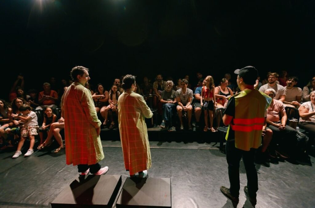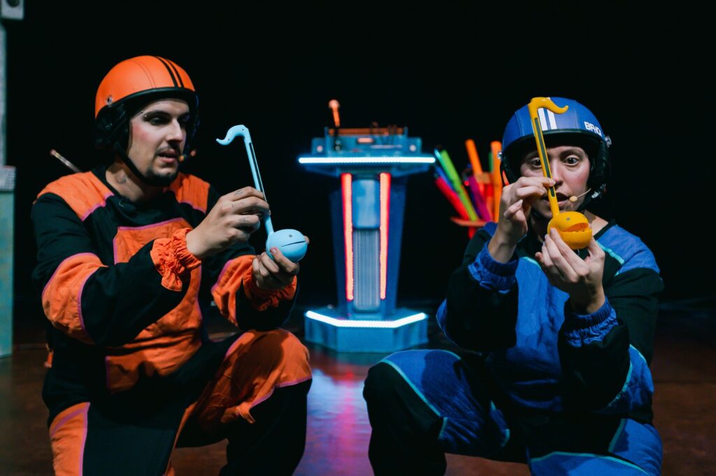 Entre experiências improváveis e situações cômicas, o elenco cria composições musicais ao vivo a partir de sons, vozes e ritmos, convidando o público a participar da experiência. Com linguagem leve, acessível e repleta de humor, une teatro musical, comicidade e investigação sonora em uma proposta que estimula a escuta atenta, a criatividade e o olhar curioso sobre o mundo. Crianças, jovens e adultos compartilham momentos de encantamento, interação e descobertas.