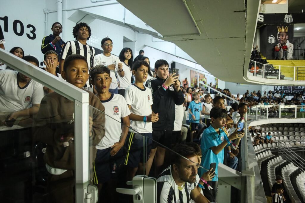 O Santos FC recebeu 33 alunos da Unidade Educacional Antônio Pacífico para o jogo contra o Vasco da Gama, na Vila Belmiro, nesta quinta-feira (26). A ação faz parte de uma parceria do Clube com a Secretaria da Educação de São Vicente, que visa incluir crianças de escolas públicas em ações do Peixe.