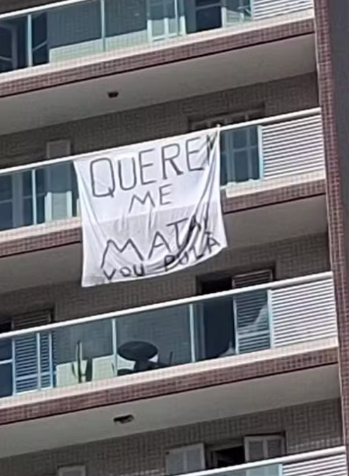 Um homem em surto psicótico chamou atenção ao estender um pano na sacada de um apartamento em Santos, litoral de São Paulo, com uma mensagem desesperada: “Querem me matar. Vou pular.” Moradores acionaram as autoridades, que realizaram um resgate delicado usando técnica de rapel para entrar no imóvel. O homem foi encaminhado a um hospital para atendimento.
