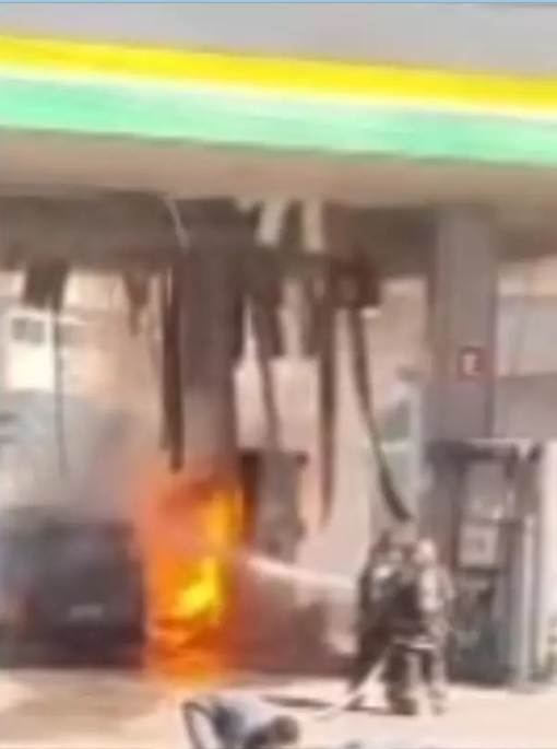 Ainda segundo a corporação, houve uma pequena explosão no local, o que contribuiu para a rápida propagação das chamas. A parte traseira da kombi foi totalmente consumida pelo fogo, enquanto a estrutura do posto também sofreu danos, atingindo a bomba de abastecimento e parte da cobertura.