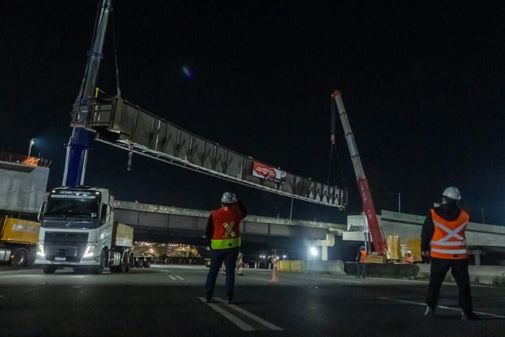 As obras do Rodoanel Norte receberam, na madrugada deste domingo (31), quatro vigas metálicas para sustentar as alças de acesso do Rodoanel Norte à Rodovia Presidente Dutra, no sentido Rio de Janeiro, no Trecho 1 da obra, em Arujá, na região metropolitana da capital e do Alto Tietê. As obras estavam paradas desde 2018 e foram retomadas no ano passado. Essa etapa de intervenções integra a primeira fase de entrega do Trecho Norte do Rodoanel, que conectará a Dutra à Rodovia Fernão Dias e tem conclusão prevista para o segundo semestre deste ano.