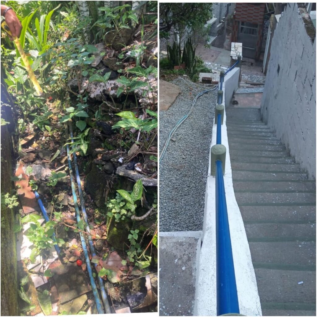 Com a instalação de tubos e caixas de passagem na lateral da escadaria, o escoamento das águas das chuvas foi otimizado, reduzindo o risco de alagamentos e o desgaste da estrutura. A intervenção também contribui para a valorização da área, além de facilitar o deslocamento dos moradores, especialmente em dias de chuva.