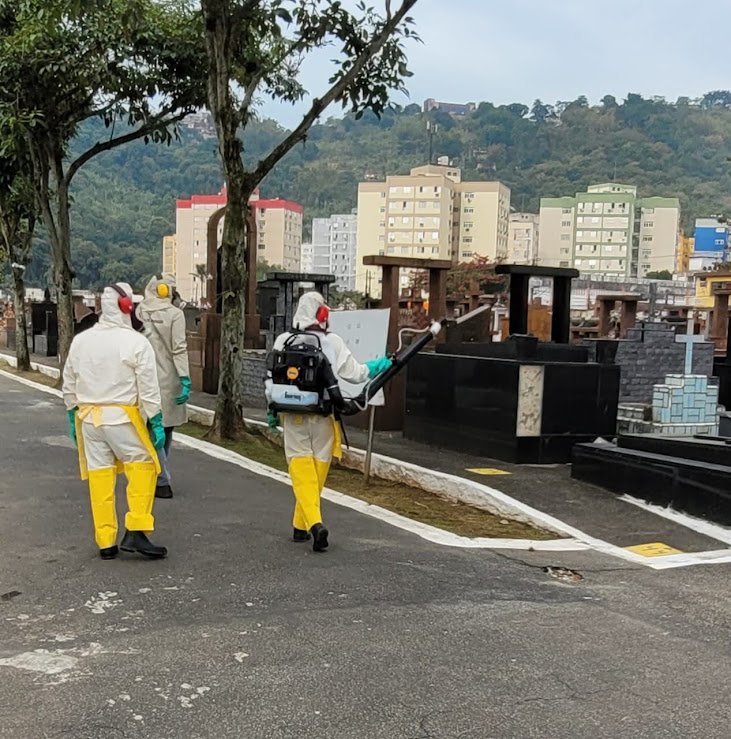 Agentes de combate a endemias de Santos realizaram, nesta segunda (4), a aplicação de inseticida nos cemitérios municipais do Paquetá, Areia Branca e Filosofia.