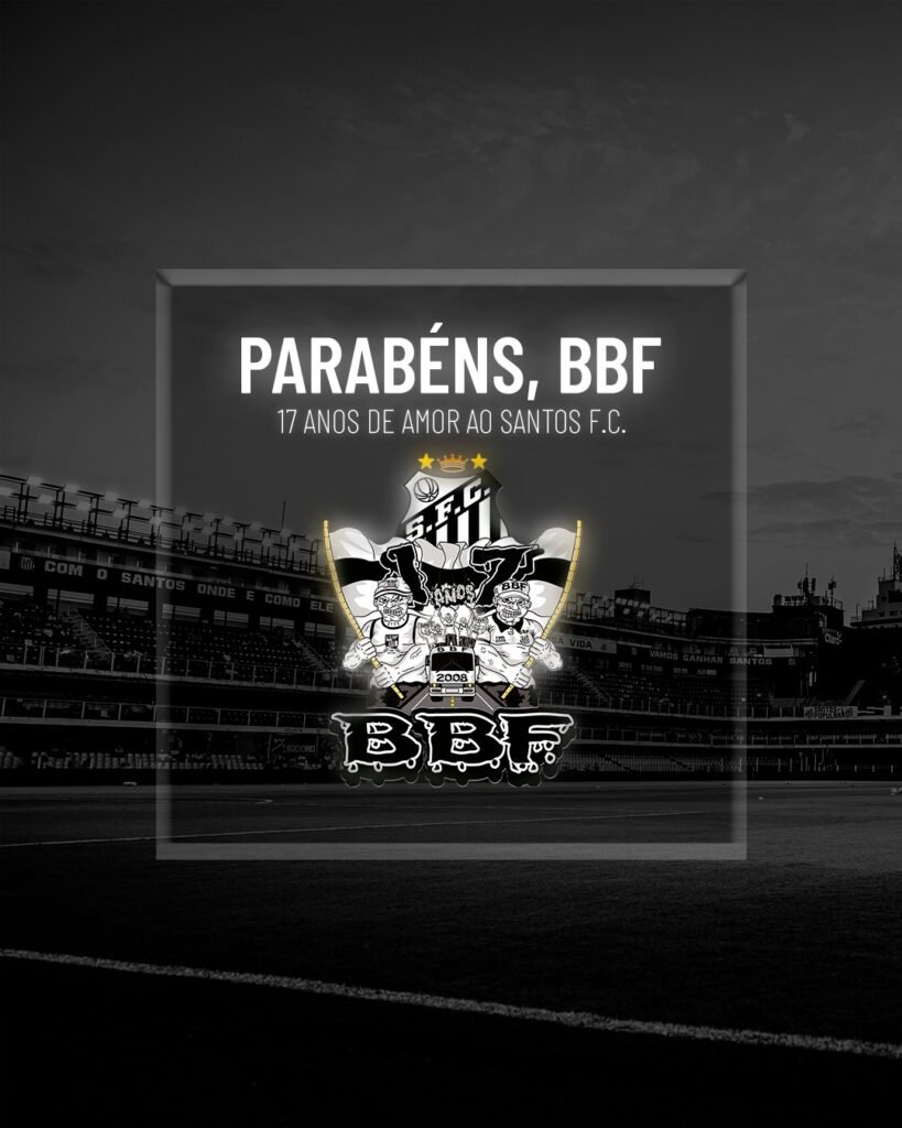O Santos FC parabeniza a Torcida BBF pelos seus 17 anos de história. Fundada em 2008, sempre esteve presente e acompanhando o Clube em todas as partidas, apoiando incondicionalmente nas arquibancadas, seja por onde for.