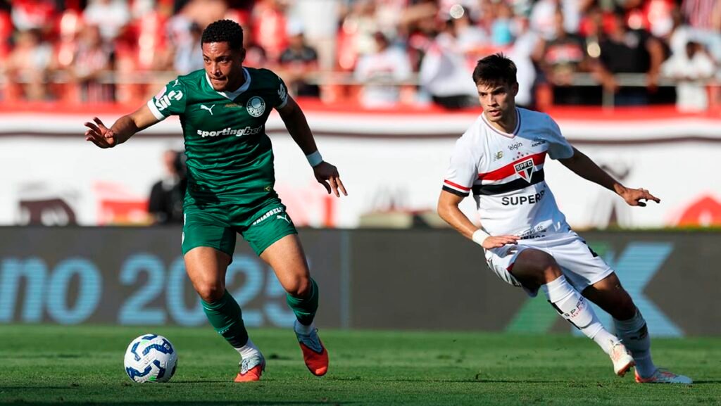 A partida foi marcada por um roteiro dramático. O São Paulo abriu uma vantagem confortável de 2 a 0, com gols de Luciano e Tapia, e teve a oportunidade de ampliar, mas o Palmeiras demonstrou resiliência, buscando a virada com gols de Flaco López, Vitor Roque e Sosa. O confronto também foi pontuado por uma polêmica de arbitragem que gerou muitas reclamações do lado tricolor.